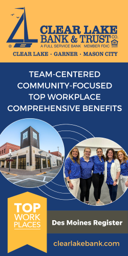Clear Lake Bank & Trust has been a cornerstone of North Iowa since 1934. As a locally owned, family business, we aim to support our employees as well as we support our customers. In 2025, CLB&T was named a Top Iowa Workplace for the 15th year in a row.